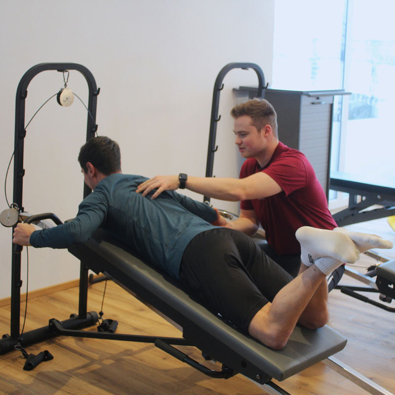 Mit dieser Verordnung führen Sie aktiv eine gerätegestützte Trainingstherapie in einer Kleingruppe bis zu drei Personen durch. Ein Therapeut erstellt mit Ihnen einen Trainingsplan und hilft, die Übungen richtig auszuführen.